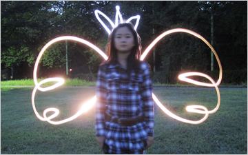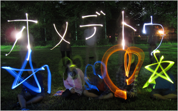 花火や、ライトで絵や文字を書いてみる。