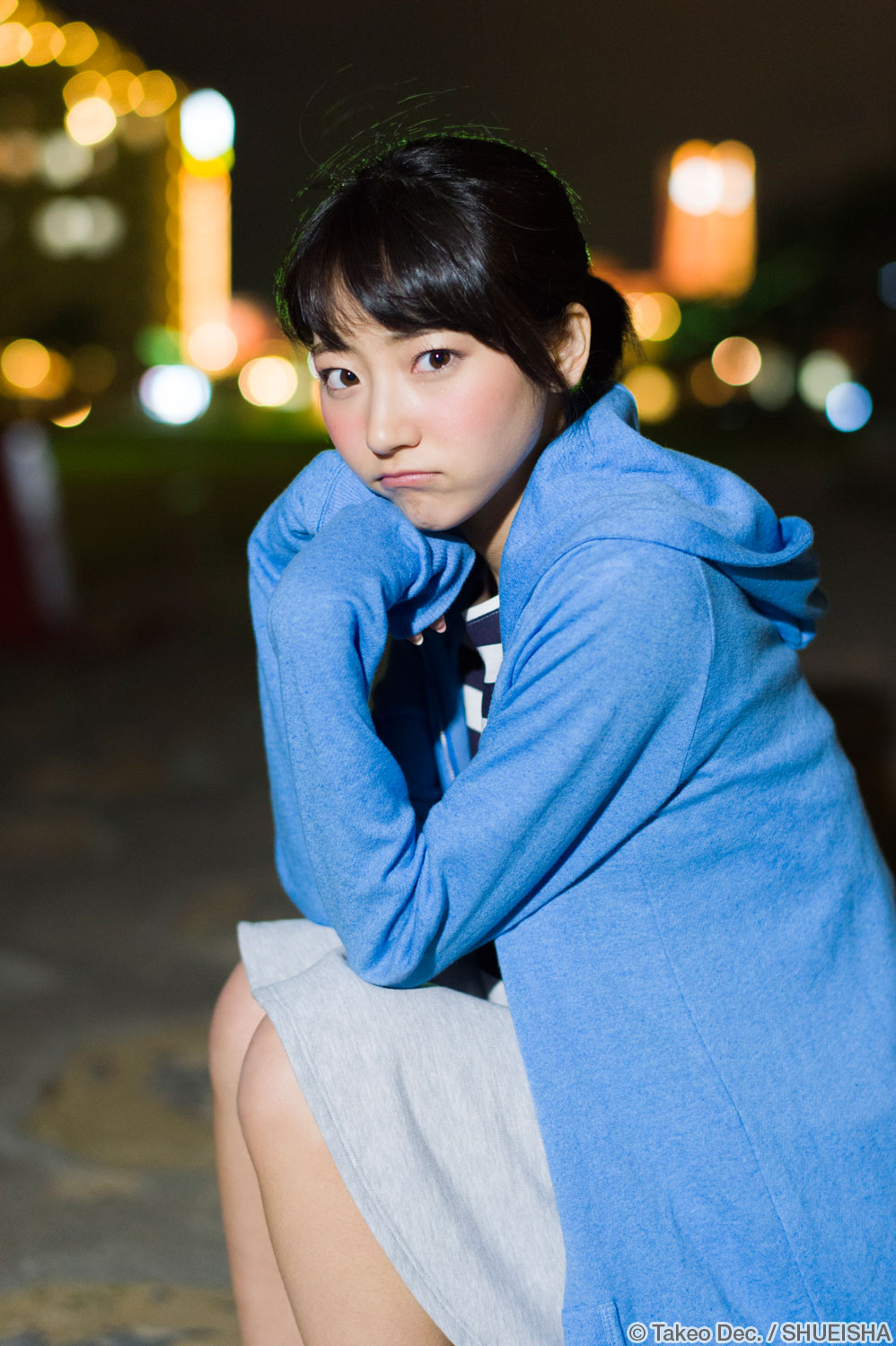 背景の夜景を撮り、時間差でモデルにフラッシュを当てて